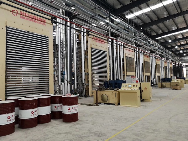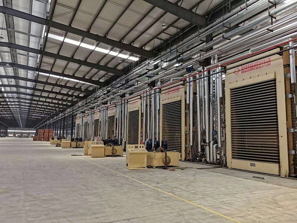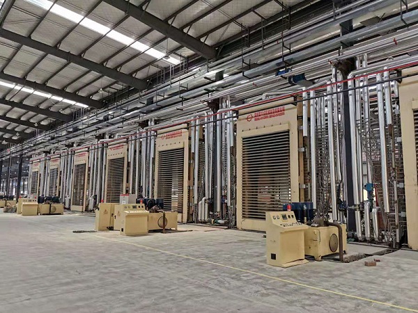 我司非常榮幸能夠為四川省威遠縣達威木業(yè)有限公司提供生態(tài)板設備,日產量為1萬張/天。于2019年中旬成功上線生產高質量的生態(tài)板。
